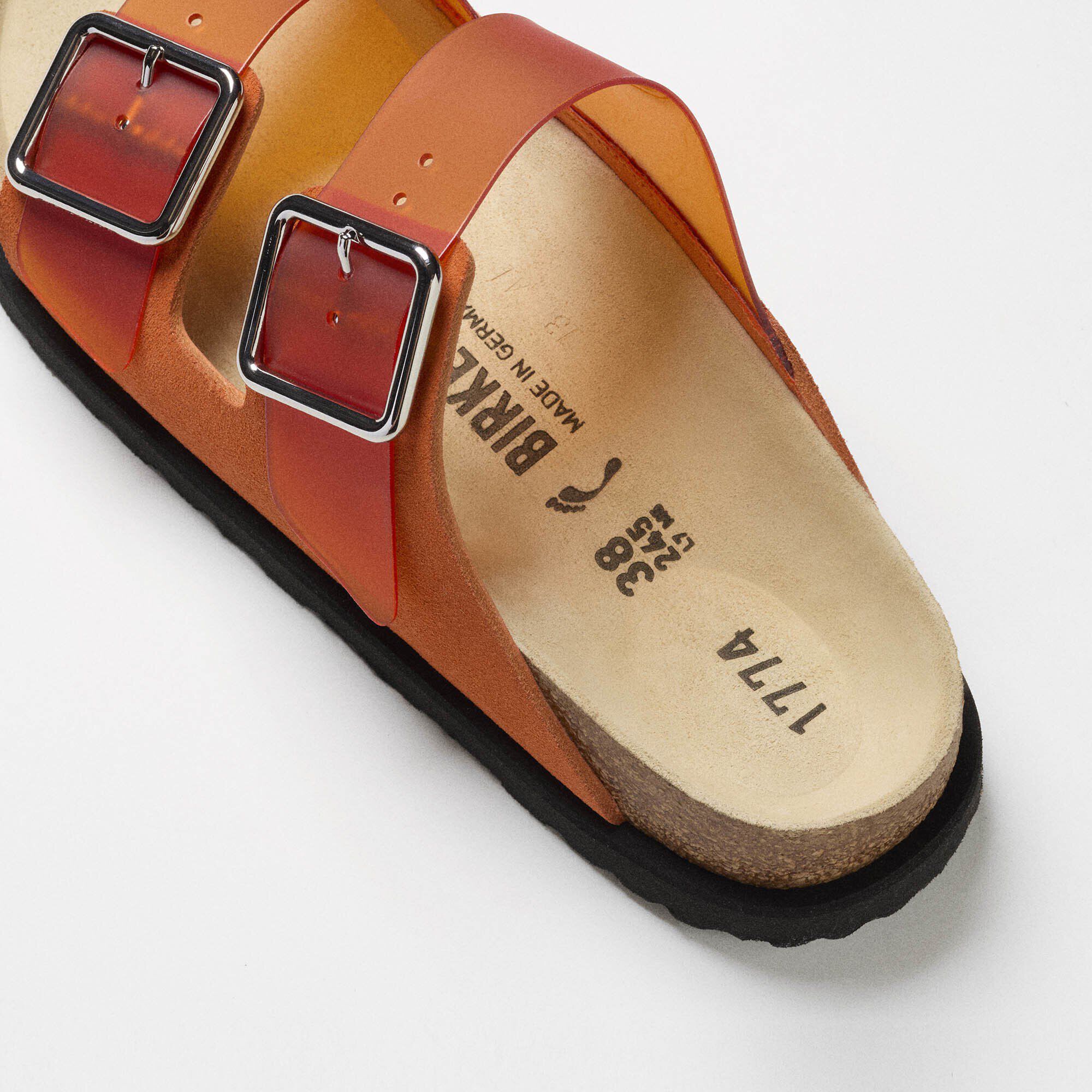 The Iconic Arizona Silhouette Has Remained Unchanged Since Its Launch In 1973. The Latest Reimagining Is Effortlessly Updated With A Semi-Transparent Colored Pvc And Premium Cazador Leather On The Buckle Part. The New 1774 Collection Encapsulates A Nostalgic Vision Of An Idealized, Never-Ending Summer.