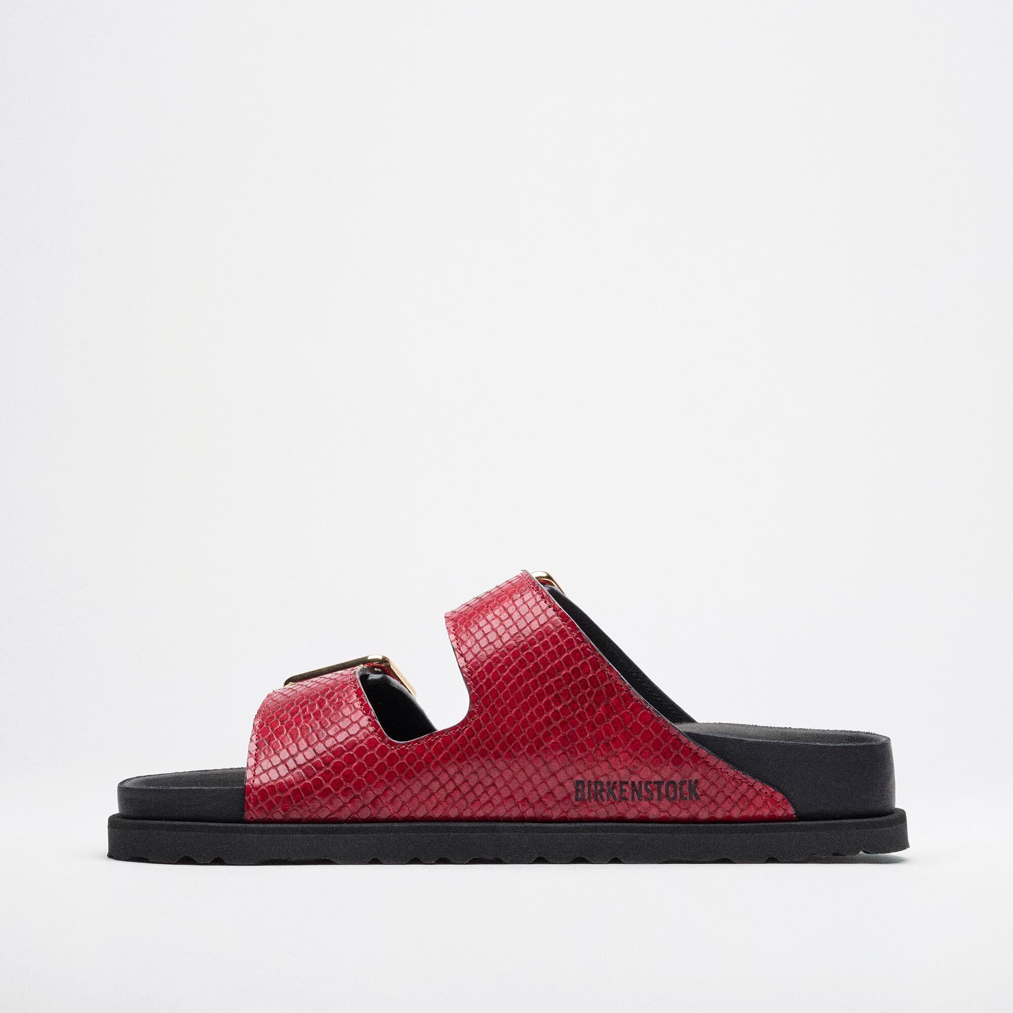 The Arizona Is Redesigned In Deluxe Italian Leather With All-Over Python Embossing, All Lined In Soft Nappa Leather. The Collection’s Colours Accentuate The Vibrant Patterns Of The Snake In Beige And Red With Birkenstock’s Signature Anatomically Shaped Footbed Covered In Black Leather, And Each Pair Is Adorned With 1774’s Distinctive Buckles In Gold Or Silver Finishes.